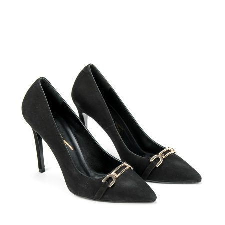 Ženske kožne plitke cipele Gia-4708 crne na štiklu