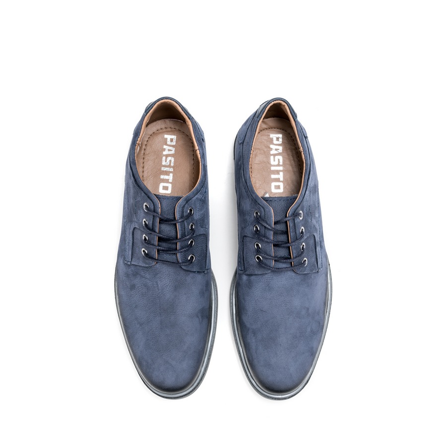 Muške kožne plitke cipele Pasito-701-2 plave ravne