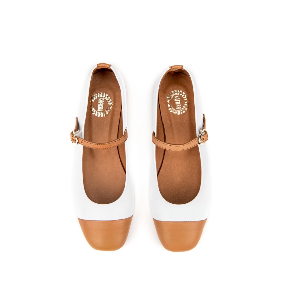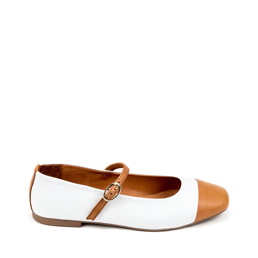 Ženske kožne baletanke Safura-MNG2461 bele ravne