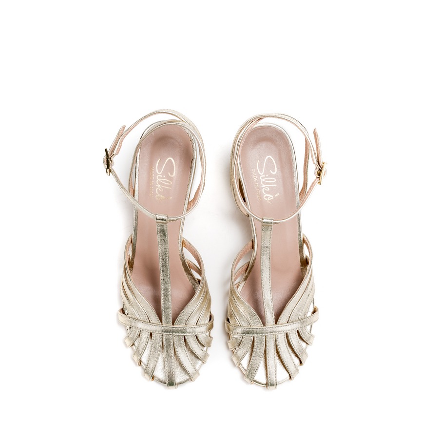 Ženske kožne sandale Silko-ALTEA20 zlatne na štiklu