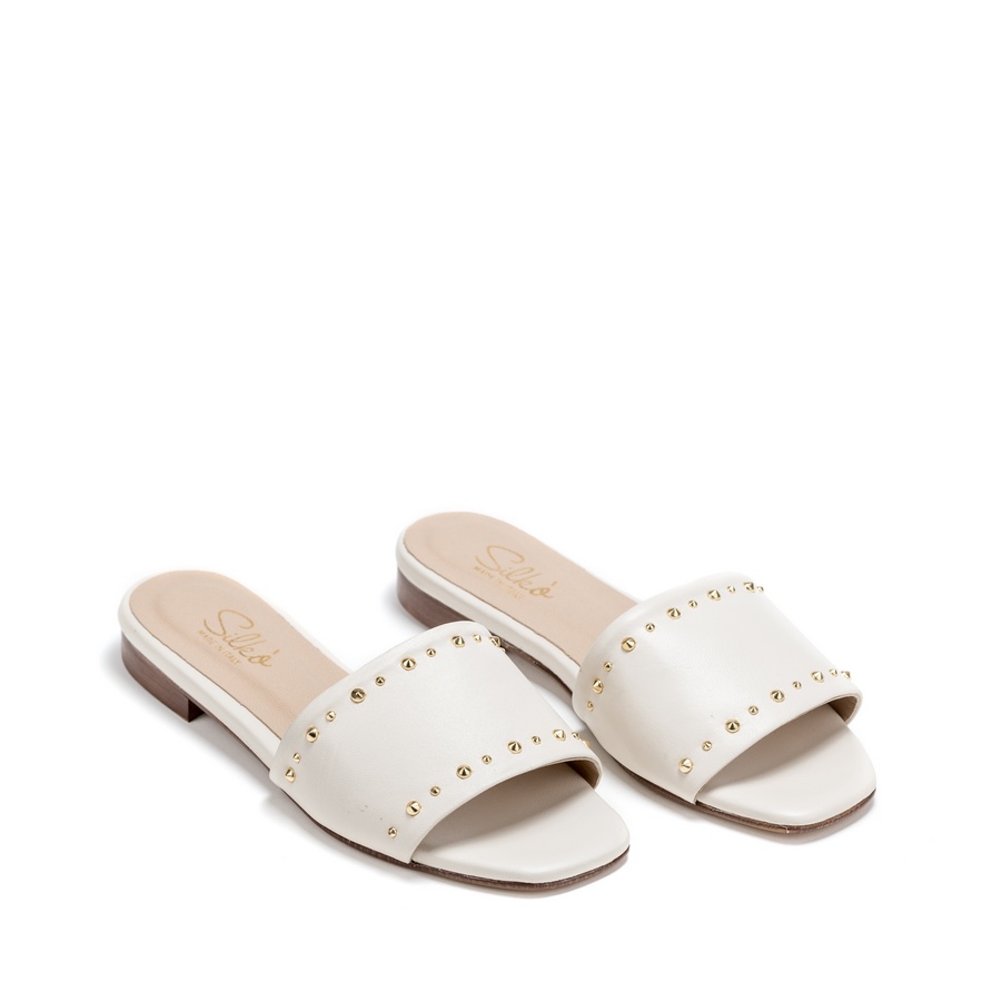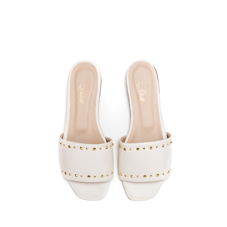 Ženske kožne papuče Silko-CAPRI11 bele ravne