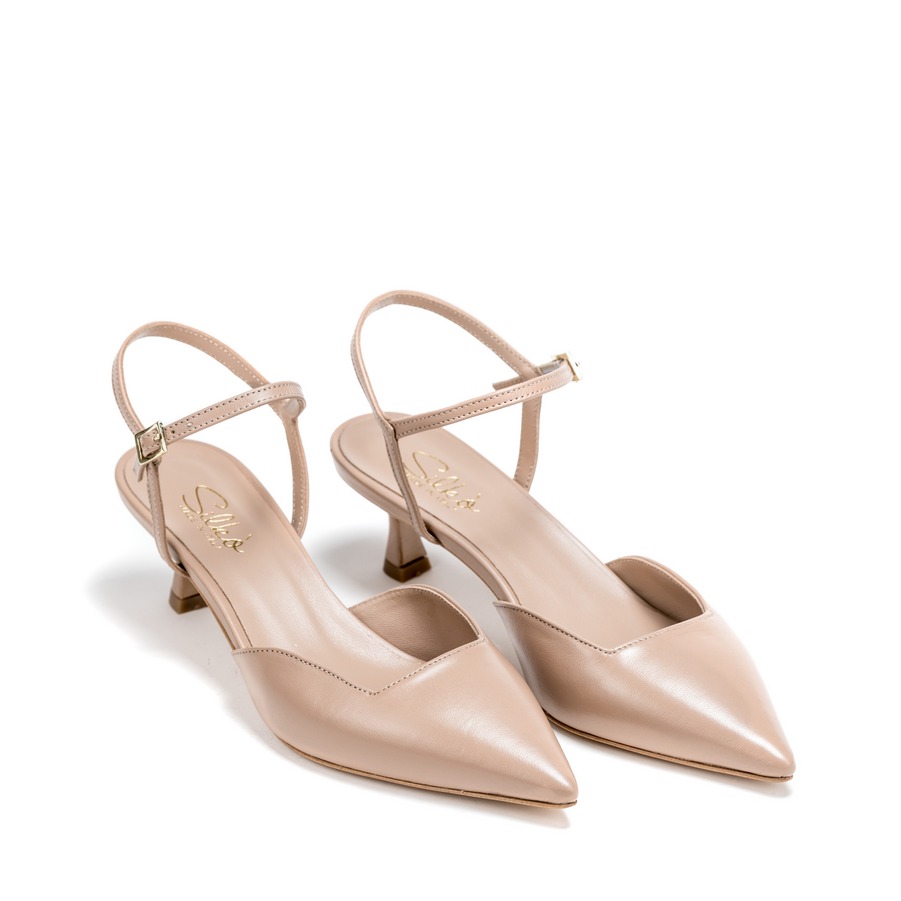 Ženske kožne sandale Silko-FIAMMA6 bež na štiklu
