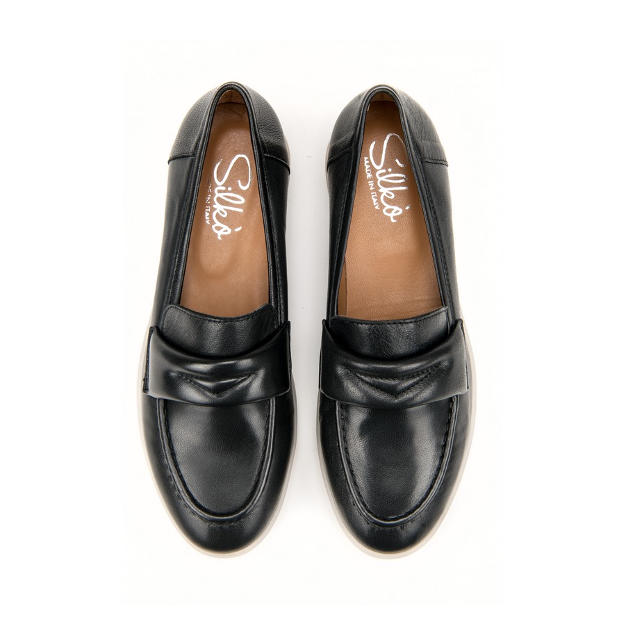 Ženske kožne plitke cipele Silko-MIKA02 crne ravne