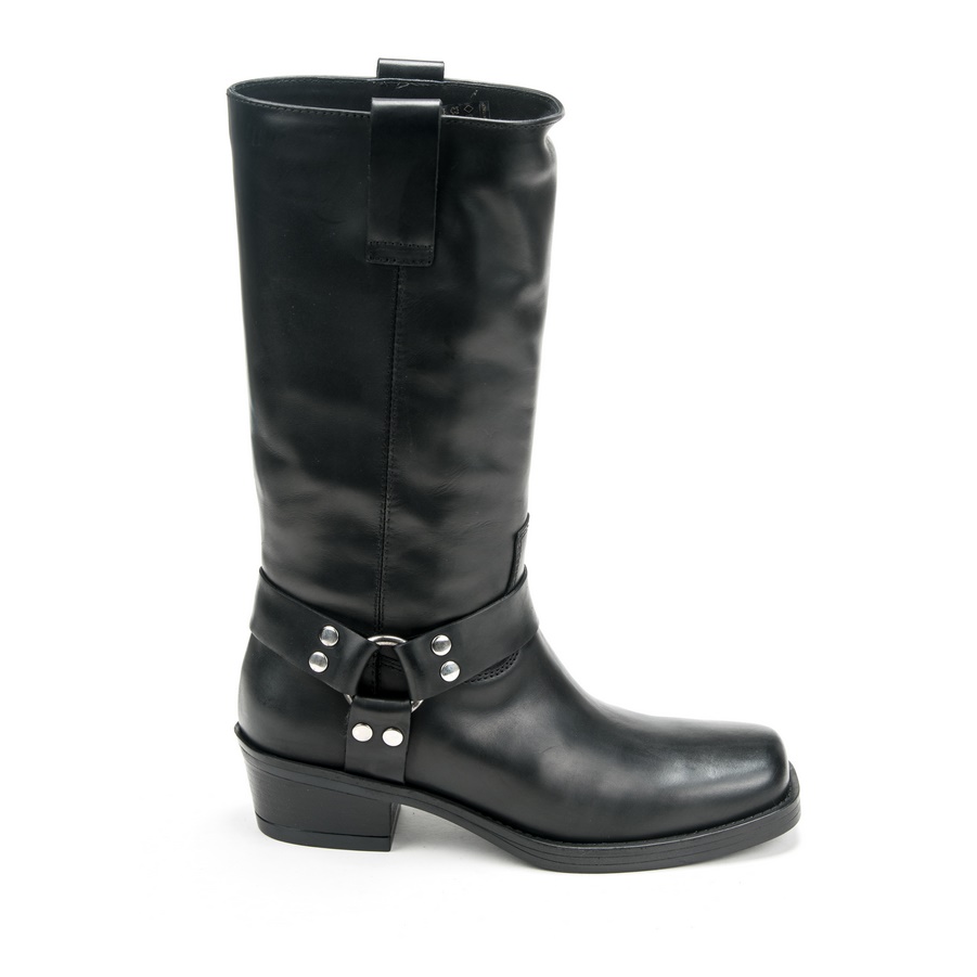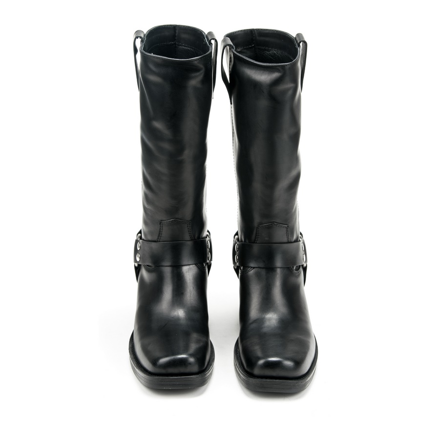 Ženske kožne plitke čizme Silko-PARIS crne na štiklu