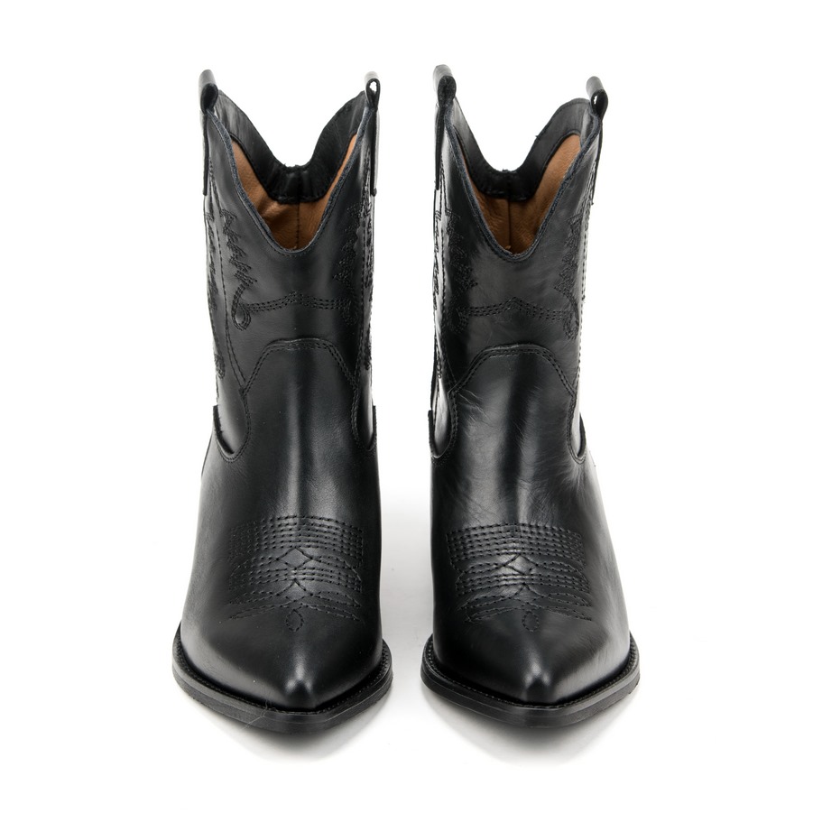 Ženske kožne plitke čizme Silko-PT02 crne na štiklu