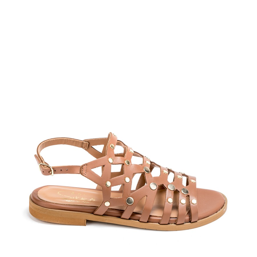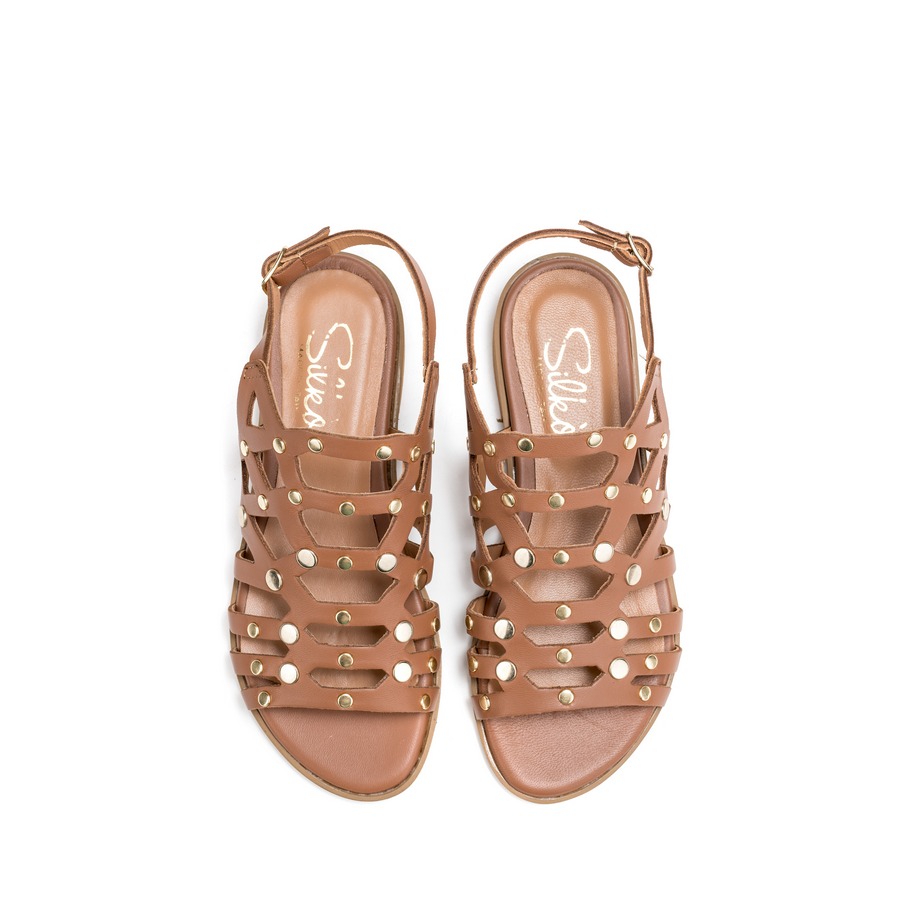 Ženske kožne sandale Silko-SC05 tamno bež ravne
