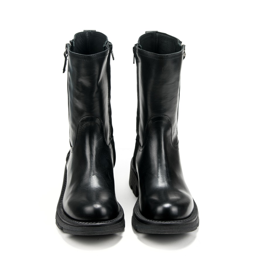 Ženske kožne plitke čizme Silko-ST72 crne na štiklu