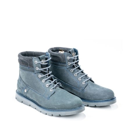 Plave cipele. Ženske ravne kožne poluduboke cipele od brušene modro plave kože. Duž cipele vez sa šet redova pertli. Unutrašnjost cplee postavljena. Đon od debele kompaktne gume sa plitkim kramponima.