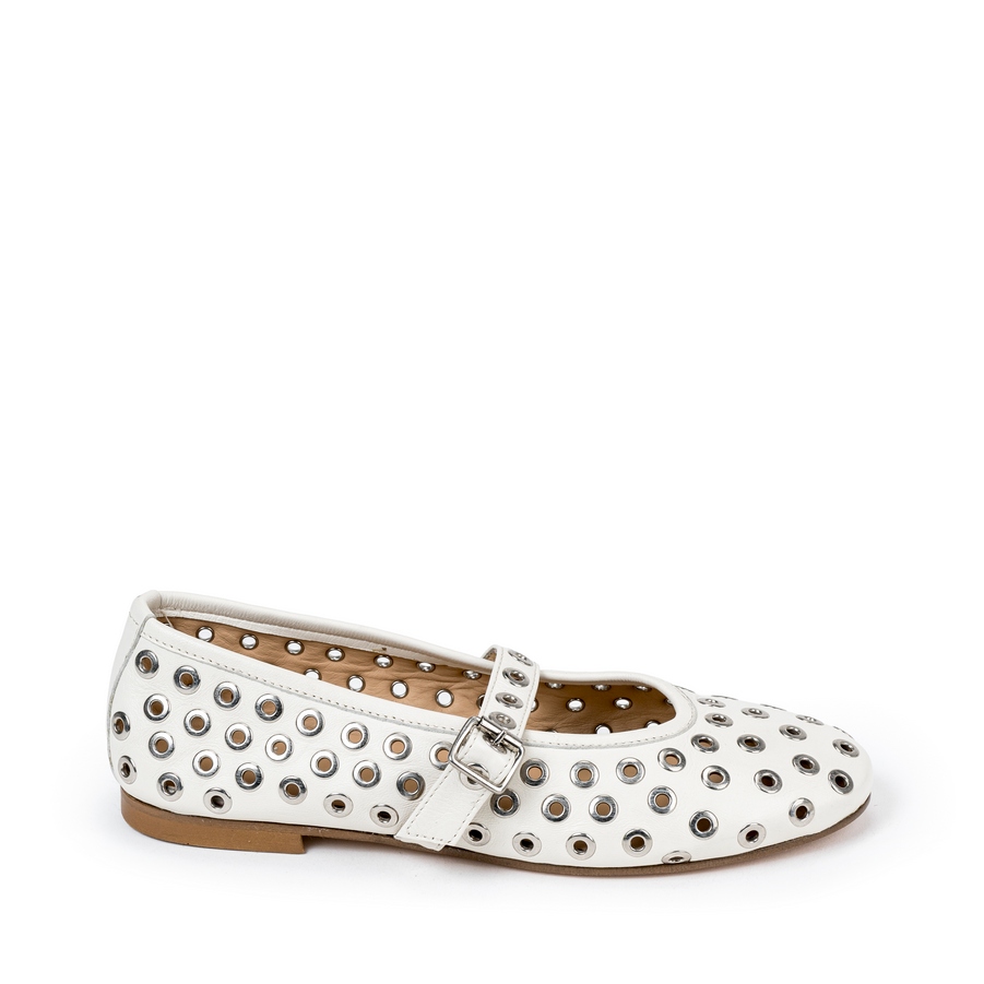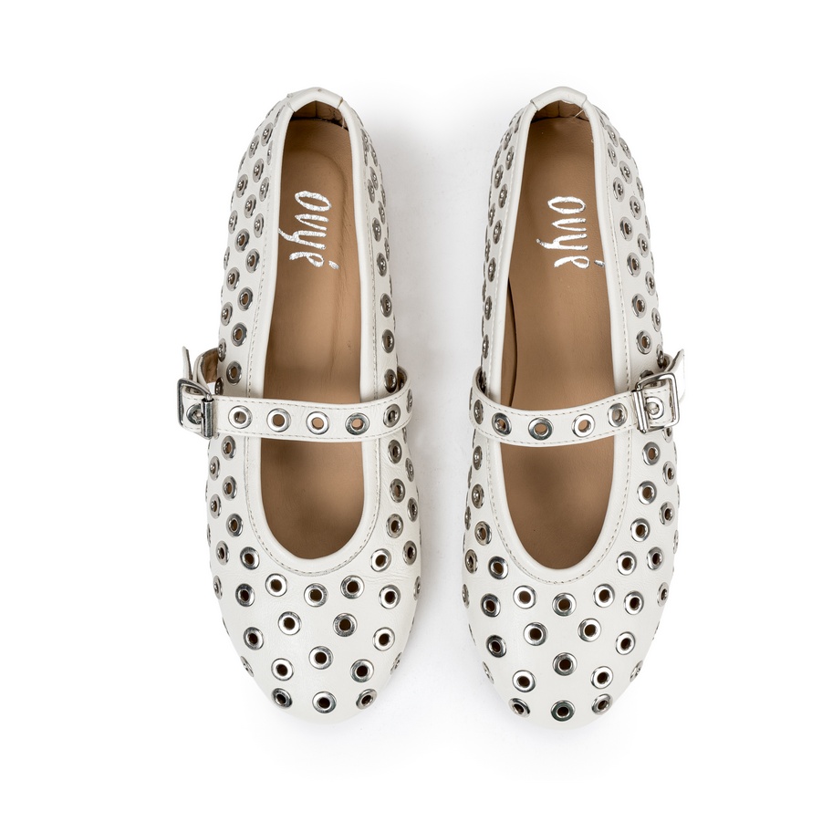 Ženske kožne baletanke Ovye-TANIA2500 bele ravne