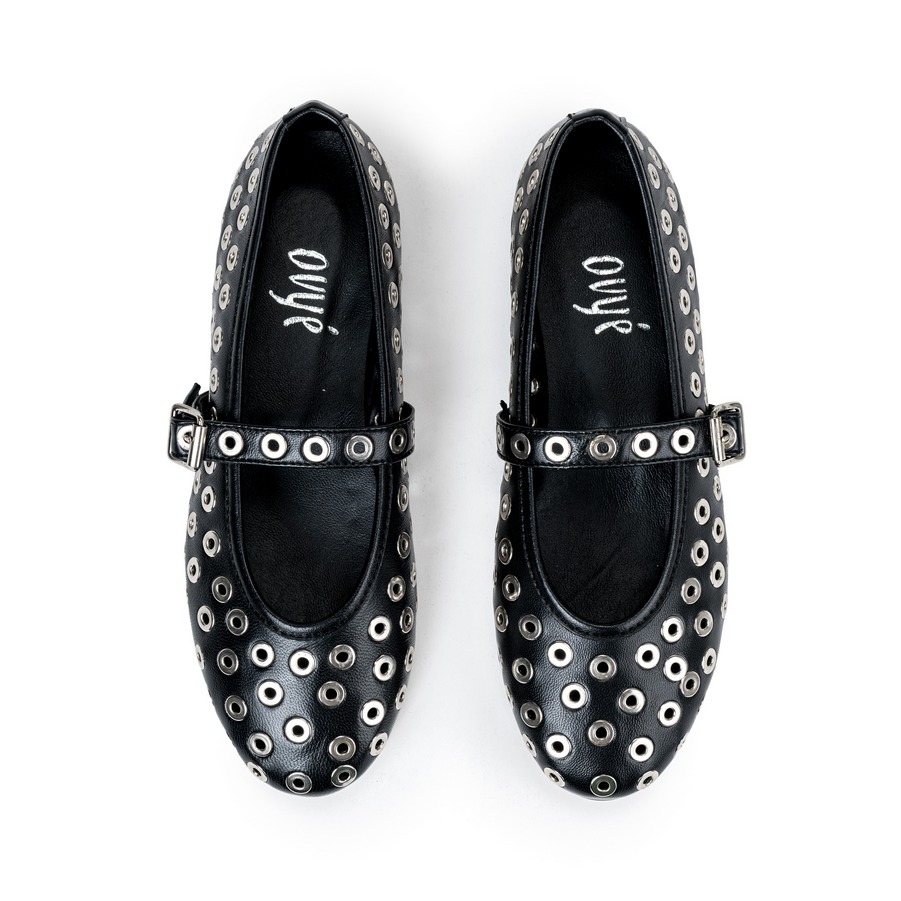 Ženske kožne baletanke Ovye-TANIA2500 crne ravne