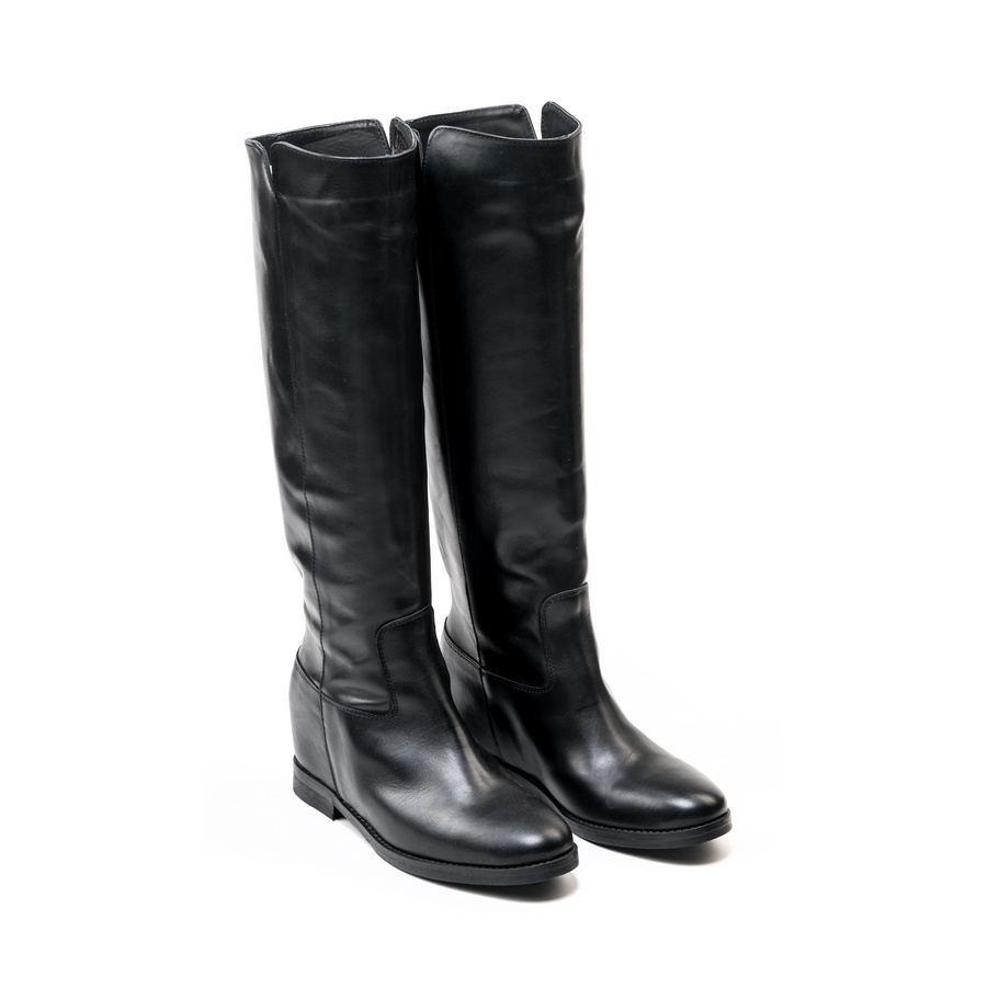 Ženske kožne duboke čizme Silko-K142 crne ravne