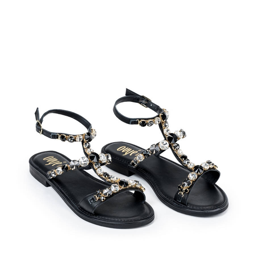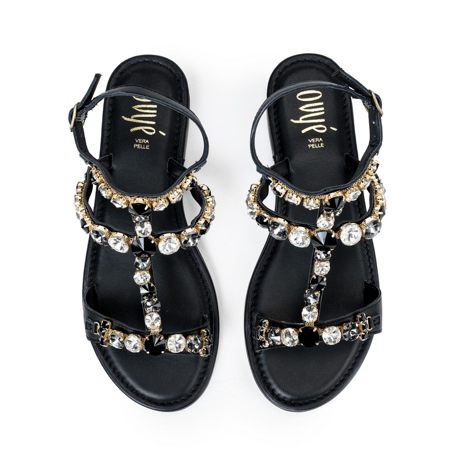 Ženske kožne sandale Ovye-AM3756 crne ravne