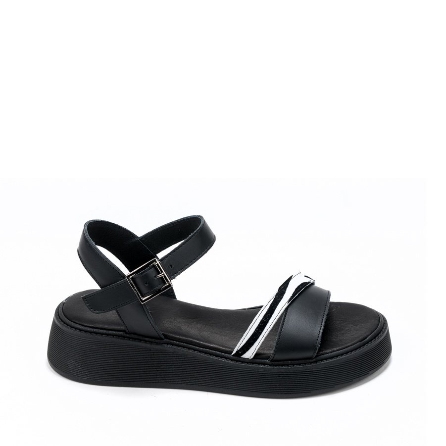 Ženske kožne sandale Pasito-7011716 crne ravne
