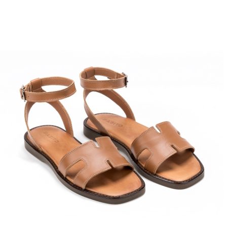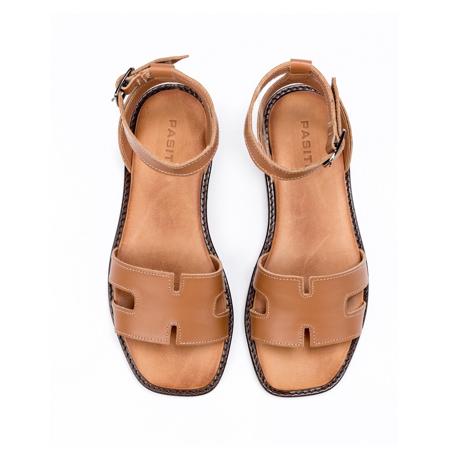 Ženske kožne sandale Pasito-7012615 braon ravne