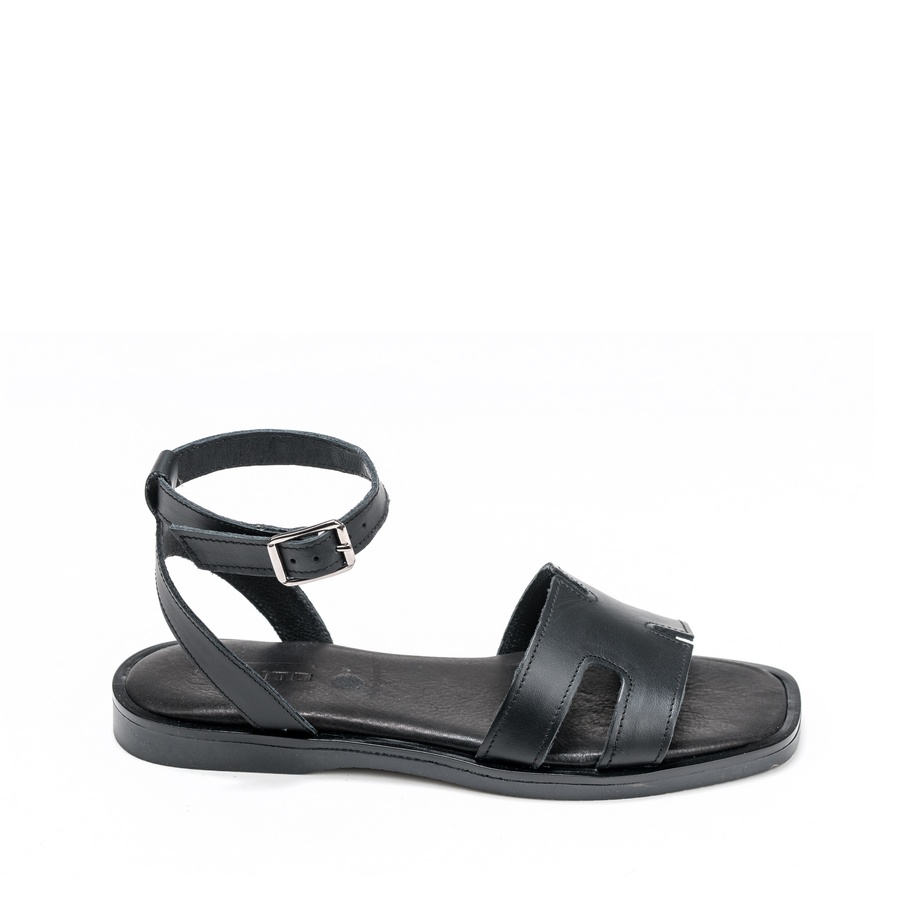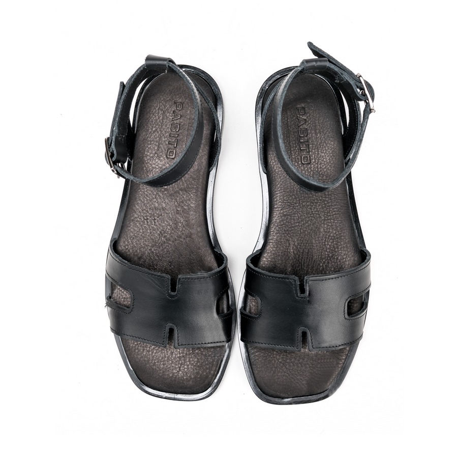 Ženske kožne sandale Pasito-7012615 crne ravne