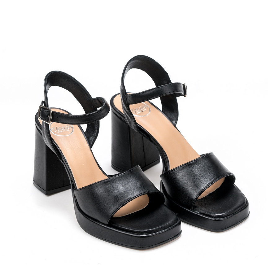 Ženske kožne sandale Velaide-F103 crne na štiklu